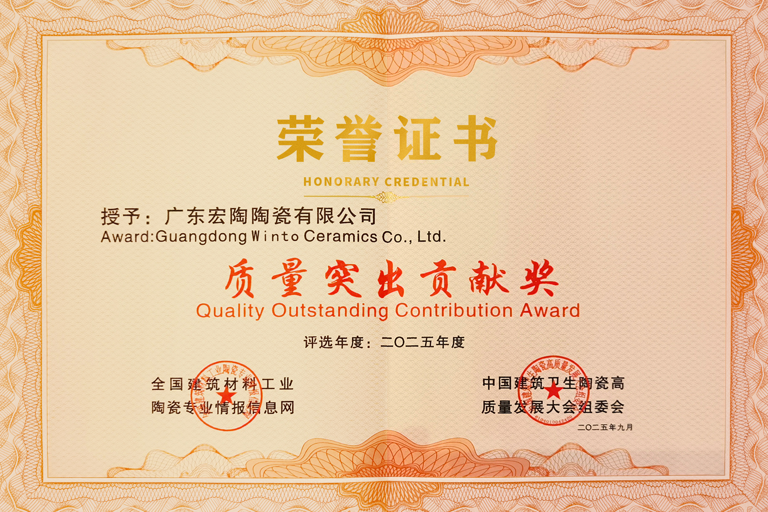 質(zhì)量突出貢獻(xiàn)獎