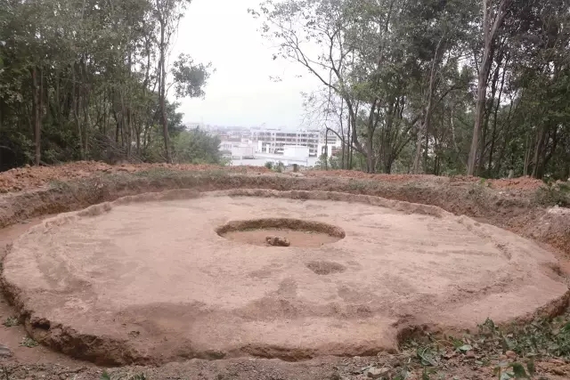 一行人來到大帽崗山頂參觀寶峰塔遺址,只見挖掘出的寶峰塔塔基已被包圍保護起來,周邊已動工建設(shè)。按照計劃,寶峰塔將在原址上重建,在復(fù)原的同時,對古塔遺址進(jìn)行充分的保護及展示(即在遺址上方新建一個保護罩),外觀形式采用嶺南傳統(tǒng)樓閣式塔,底層直徑為10.6米,總高度為55.58米。