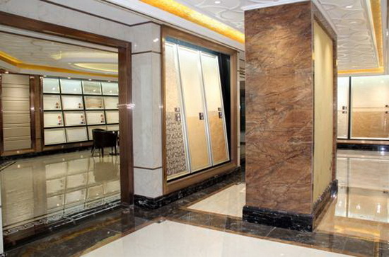宏陶大理石全拋釉陶瓷磚900mmX900mm斜板展示區(qū)