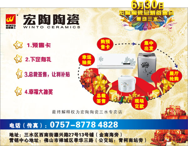 圖2、惠動(dòng)三水,權(quán)限一天(宏陶陶瓷三水專(zhuān)賣(mài)店組織簽售會(huì)宣傳單張背面)