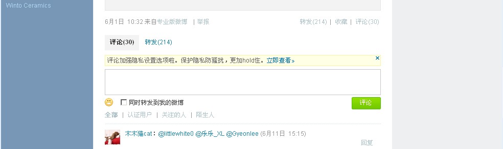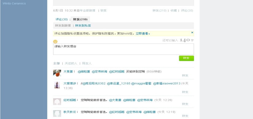 ,進入宏陶微博評論與轉(zhuǎn)發(fā)界面(如下圖示),